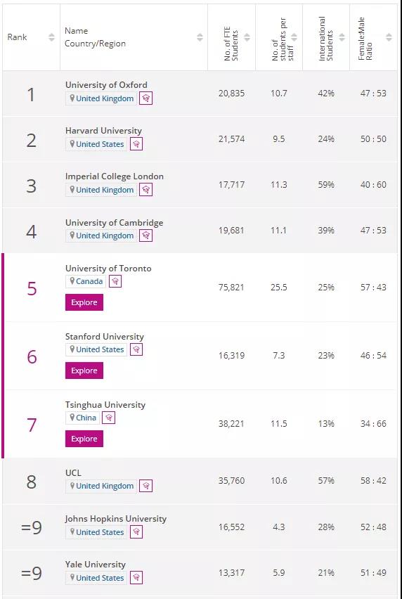 中国香港大学首次跻身前20榜单,较去年跃升8名。