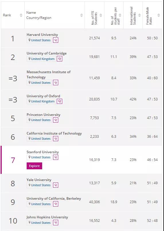 哈佛大学位居榜首,而且在TOP 20榜单中,美国大学占据14名。