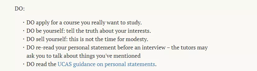 对于PS小白来说,除了要了解各院校官方给出的文书要求,牛津、剑桥等英国G5高校还建议申请者阅读参考UCAS官方给出的PS写作指南——“如何撰写UCAS本科申请文书”。