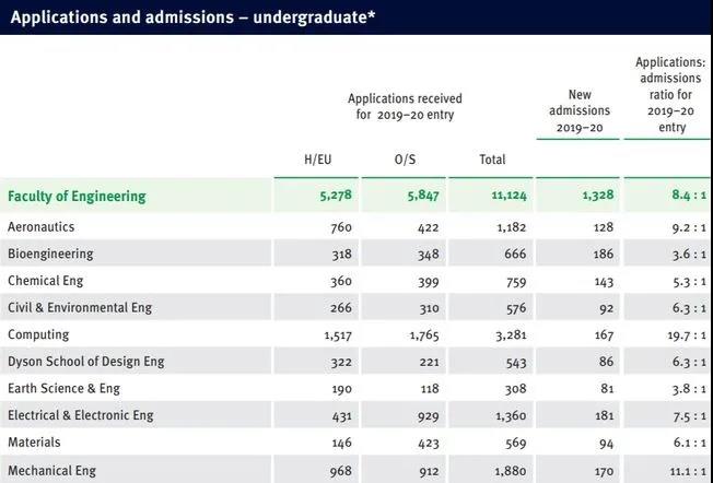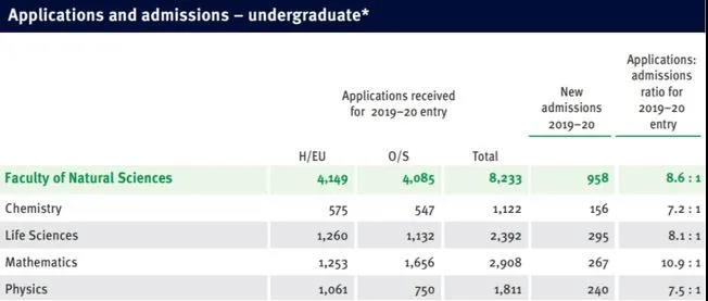 帝国理工学院共设有4个学院:工程学院,医学院,自然科学院和商学院(没有开设本科专业),目前已经公布了2019/20年的最新申请数据,我们不难发现本科申请里面,工程学院中的计算机(Computing)、自然科学学院下的数学(Mathematics)和生命科学(Life Sciences)的申请量排名前3。