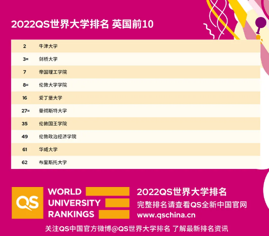 下面一起看看2022年QS世界大学排名中,英国院校的情况吧!