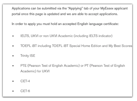 埃塞克斯大学综合科研实力在英国名列前茅,其接受四六级成绩,允许学生用于入读语言课、本科课程、硕士课程。