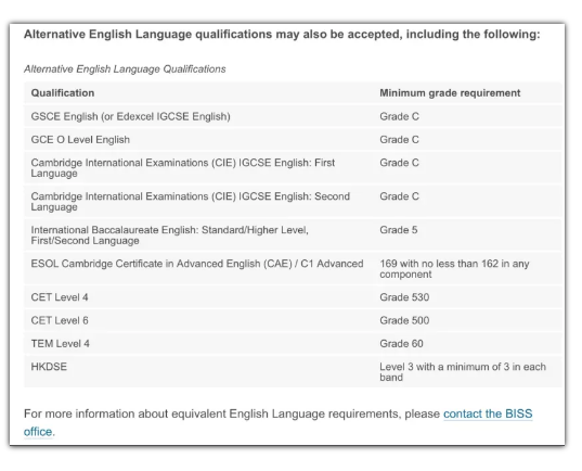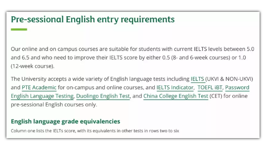 同时学校也可接受托福 IBT,Duolingo,Pearson PTE,Cambridge B1/B2/C1,以及 Trinity ISE I, II, III 英语成绩申请语言班课程。