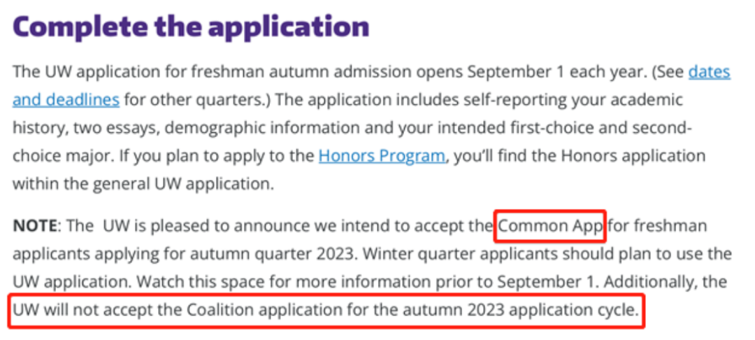 *注意:华盛顿大学将不再接受2023年秋季入学的申请人使用Coalition系统进行申请。