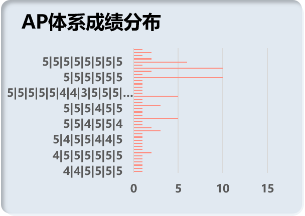 AP 课程体系在82人中,约46%人提供了超过6门以上5分的成绩;