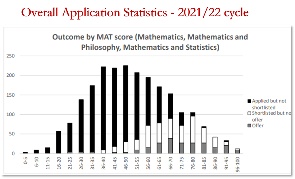从成绩分布图可以看出,MAT是牛津数学相关专业决定让谁面试和给offer的重要因素。