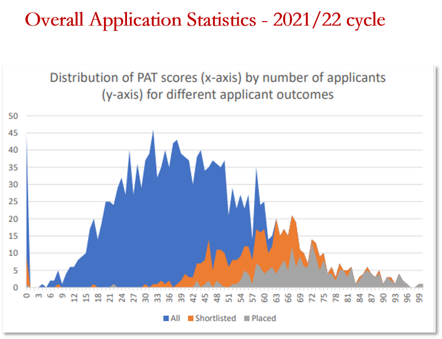 从2021年牛津大学官方发布的分数统计图来看,基本上需要64分以上,才算是有优势的分数;