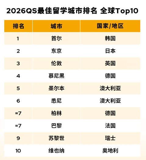 “2026年QS最佳留学城市排名重磅发布!亚洲城市包揽冠亚军,欧洲名校城市表现抢眼。小语种留学城市已成当今热门!”
