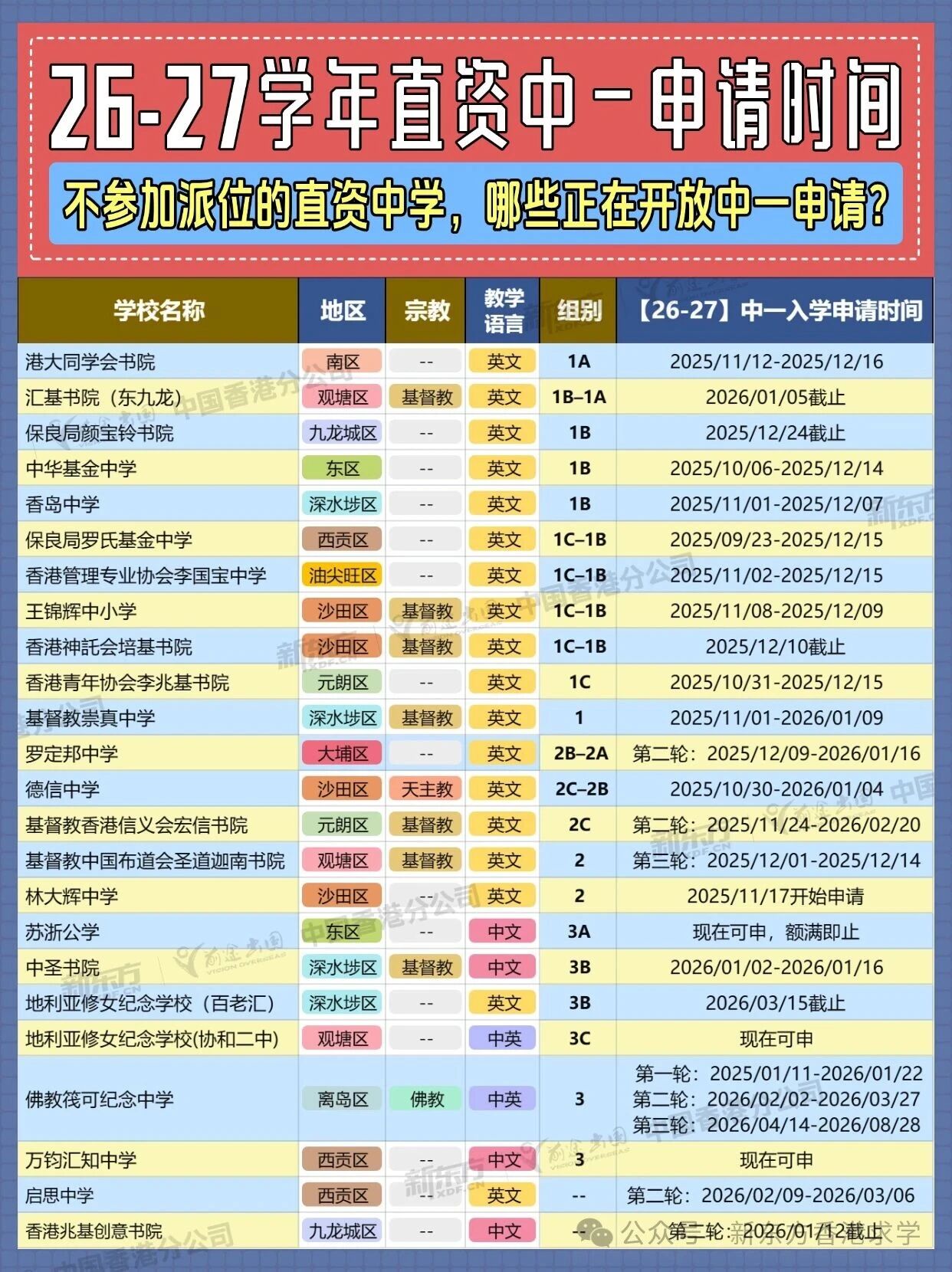虽然部分Band 1A名校可能已截止报名,但根据往年及近期动态,仍有不少优质直资中学在12月至次年春季保持活跃。