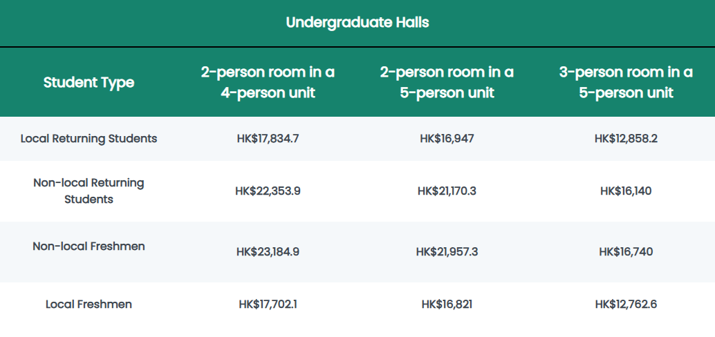 住宿:17,290-37,940港币(校内)|校外30,000-50,000港币